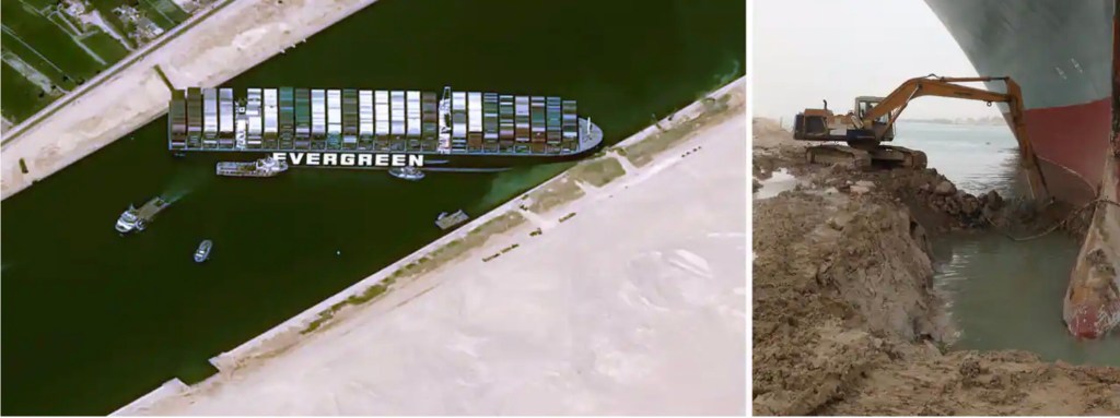Jag vet inte hur snart efter strandningen bilderna är tagna, mycket kan ha ändrats. Men om det kostar 80 miljarder per dag; lite fler grävmaskiner och mudderverk skulle vara motiverat,