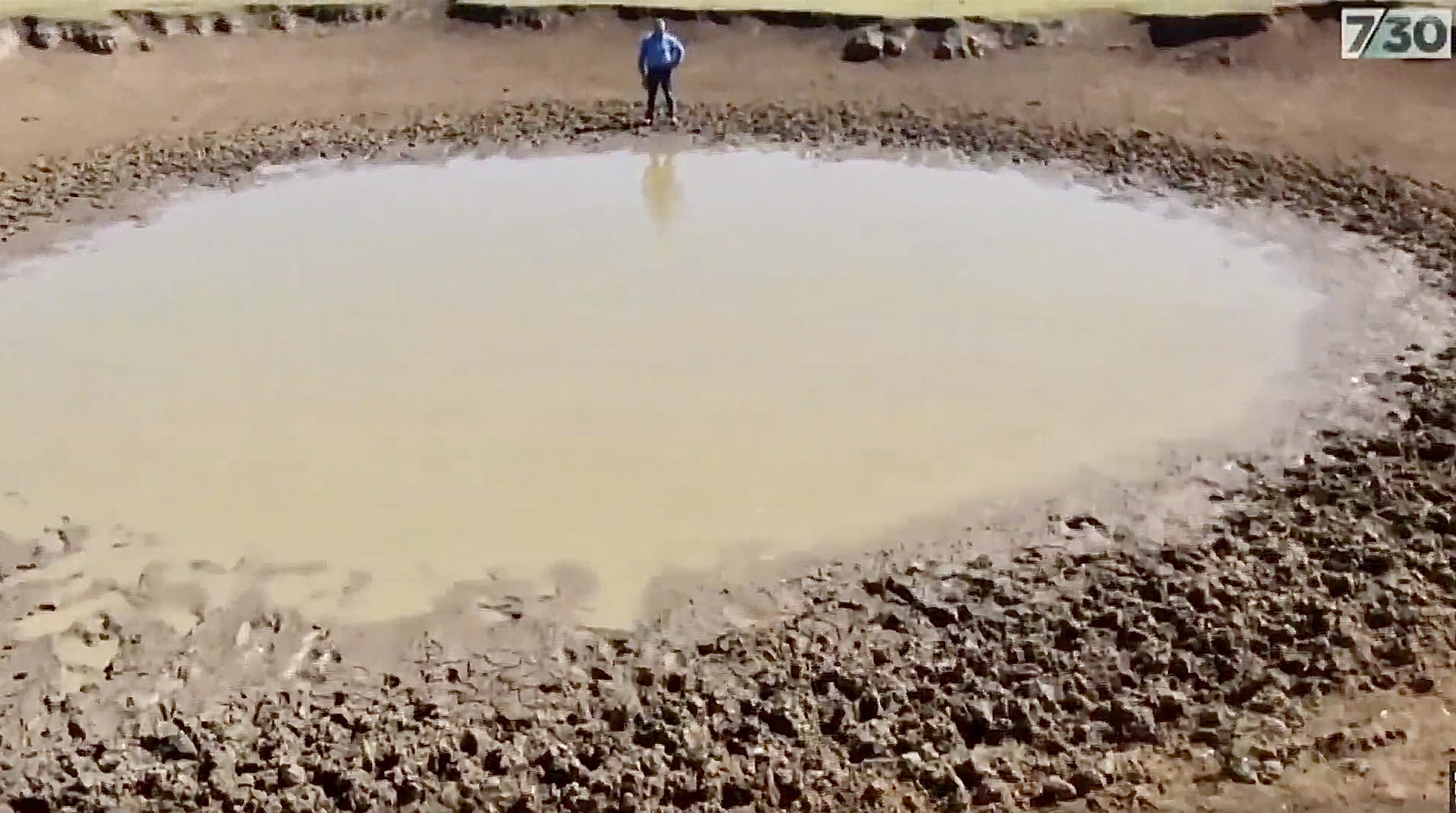 Hav och andra vatten täcker mer än 7/10 av Jordens yta och bidrar till atmosfärens innehåll av vattenånga och moln. Jordytans ojämnheter, porer, djur och växter gör detsamma. Bilden nedan (ur videon) visar ett krympande vattenhål där djur trampar i gyttjan och ökar den vattendunstande ytan.