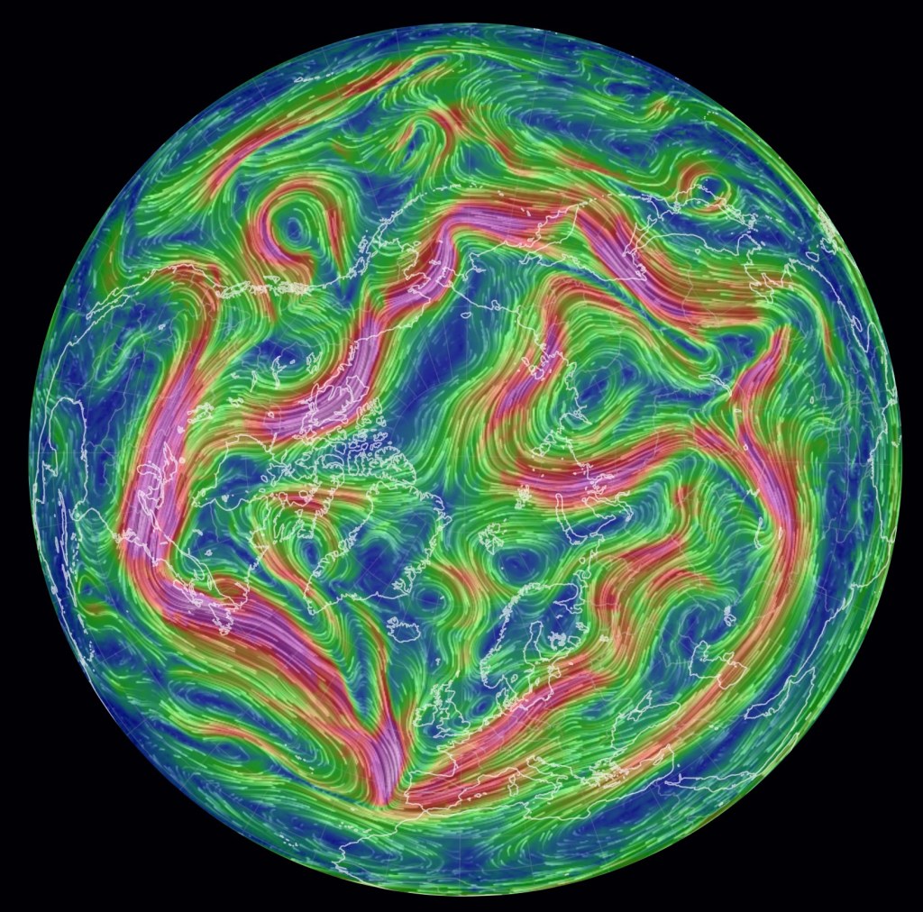 Polarjetströmmar på både norra och södra halvklotet bildar en slags ‘gardin’ som skiljer polaratmosfärers kyla från högre temperaturer närmare ekvatorn.