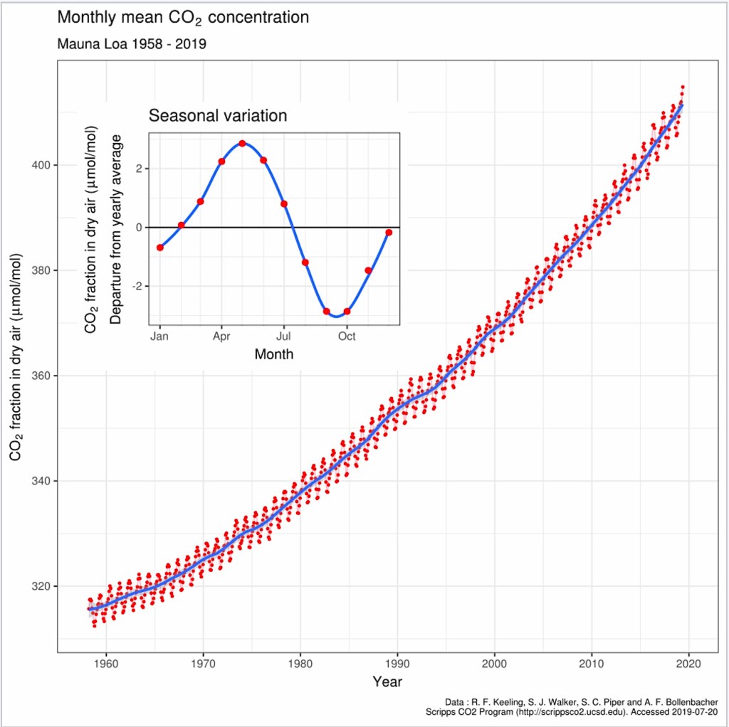 Då och då klipps och klistras texter om ”livets gas”. Den man syftar på är CO2, koldioxid. Du kan följa dess säsongsvariation och långsiktiga ökning i en kurva som du antagligen känner igen.