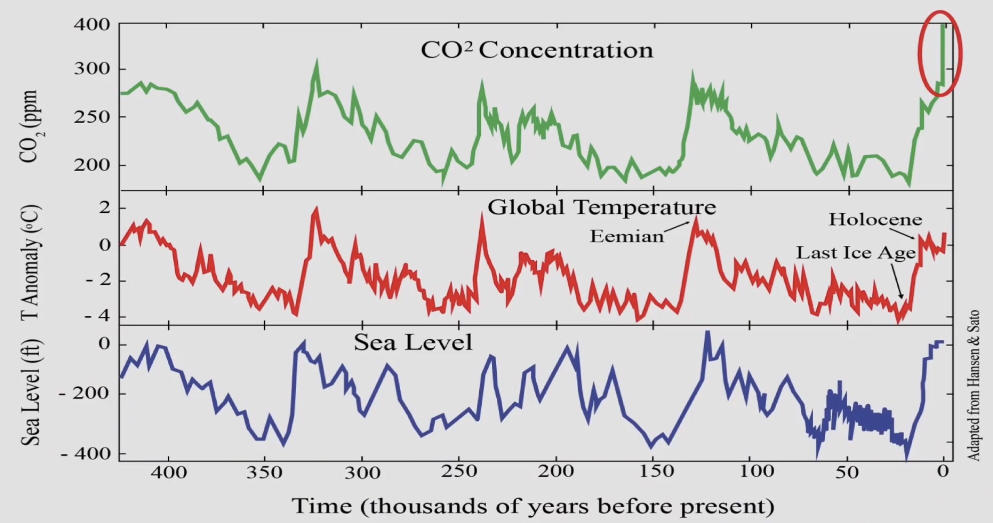 De som ifrågasätter att människan ligger bakom förändringar i klimatet brukar hänvisa till data från iskärnor som tydligt visar koldioxiden närmast lagbundet ligger 800 år efter temperaturen. Slutsatsen brukar bli att det som sker är utom mänsklig kontroll.